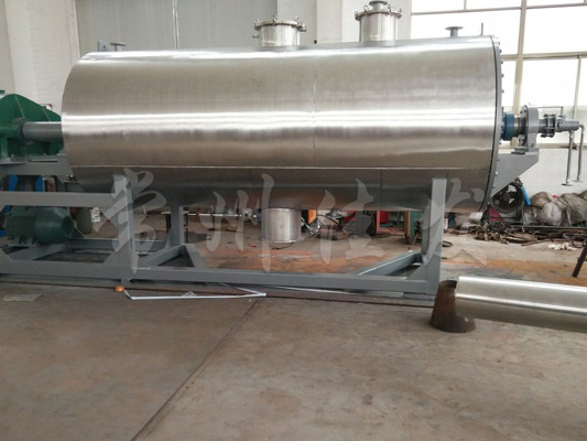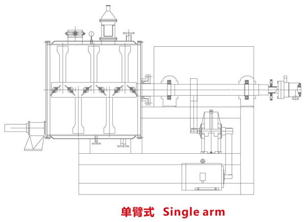 本機是一種新型臥式間歇式真空干燥設(shè)備,濕物料經(jīng)傳導(dǎo)蒸發(fā),帶有刮板攪拌器不斷清除熱面上的物料,并在容器內(nèi)推移形成循環(huán)流,水份蒸發(fā)后由真空泵抽出。
