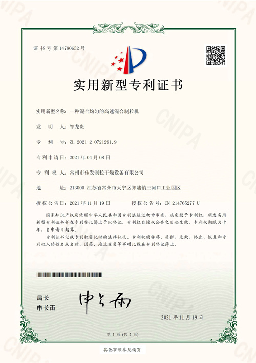 CHANGZHOU JIAFA GRANULATION AND DRYING EQUIPMENT CO., LTD